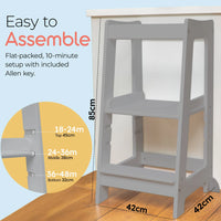 No more toddler grabbing at your ankles asked to be lifted up! The Stepup Baby Toddler Tower enables your child to fully engage in family life in a safe and fun way.